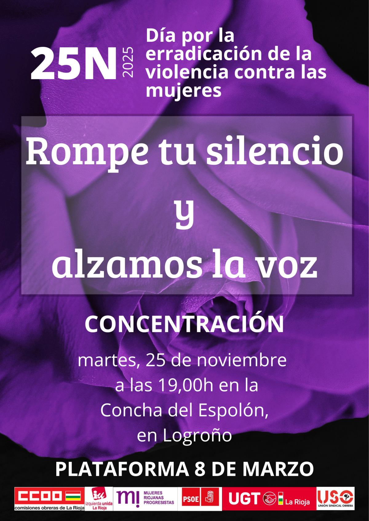 Desde CCOO tendremos una jornada sindical por la erradicación del sistema prostitucional, que culminará con una concentración a las 12:30 horas en la puerta del sindicato. Por la tarde con la Plataforma animamos a la afiliación y a la ciudadanía a sumarse a la concentración convocada por la Plataforma 8M a las 19:00 horas en la Concha del Espolón.