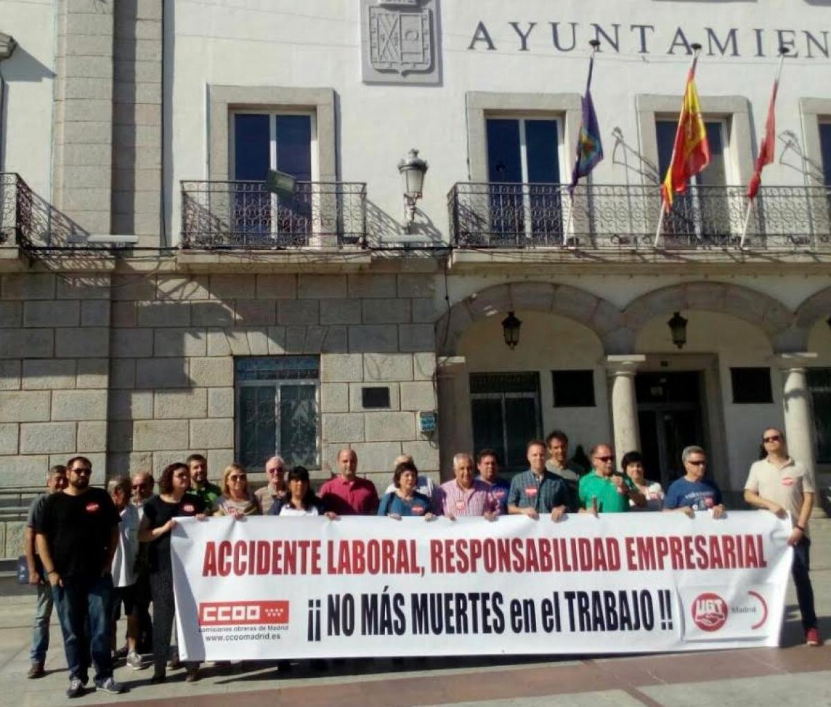 CCOO y UGT se han concentrado frente al Ayuntamiento de Colmenar Viejo ante el accidente laboral mortal que tuvo lugar en dicha localidad el pasado lunes. Allí se ha leído un manifiesto y se ha guardado un minuto de silencio para visibilizar y protestar por la degradación de las las condiciones de trabajo y la falta de inversión en las empresas y la administración en materia de prevención de riesgos laborales, así como, por sus efectos en forma de aumento de la siniestralidad laboral.