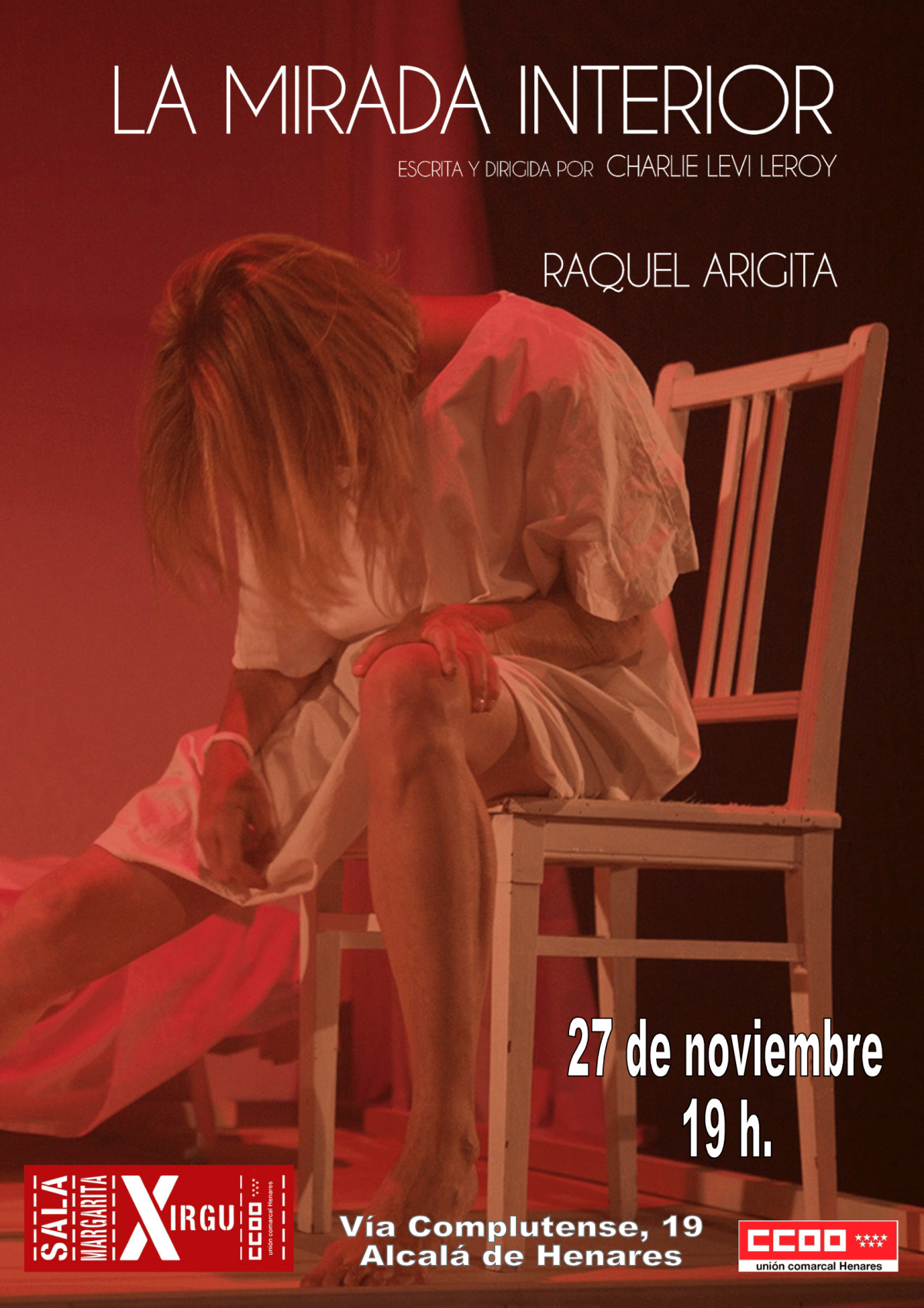 Antes, el sábado 27 de noviembre, a las 19 horas, dentro de la programación de la sala Margarita Xirgu, se representará “La Mirada interior”, escrita y dirigida por Charlie Levi Leroy e interpretada por Raquel Arigia.