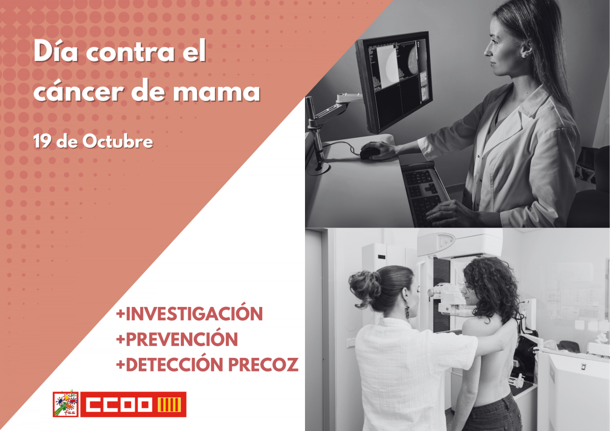 En el marco del Día Mundial contra el Cáncer de Mama, la Federación de Sanidad y Sectores Sociosanitarios de CCOO hemos trasladado a la Conselleria de Sanitat una serie de demandas imprescindibles para reforzar la protección de las profesionales sanitarias del sistema público frente a los riesgos laborales que pueden incrementar su vulnerabilidad a esta patología. Las peticiones contemplan desde estudios epidemiológicos específicos hasta mejoras en cribados, reconocimiento de condiciones laborales específicas y vigilancia activa de la salud.